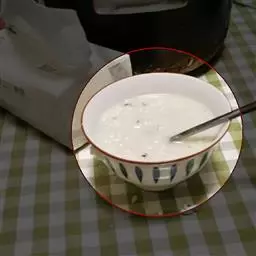 3、一手抓墨鱼胶,从拇指虎口处挤出小团,另一手使汤匙将鱼胶刮下,放进生油中浸脱,双手连贯动作,至刮完鱼胶丸为止。