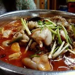 煮肉丸的时候,可以往汤里放入配好的蒜朥(大蒜切碎后油炸)。它与肉丸非常搭味,是潮汕著名的调味,非常的香。与肉丸一起也配好了另外一款潮汕著名调料:沙茶酱。沙茶酱配料非常繁多,口味非常丰富,搭配清汤涮出来的肉丸,正是相得益彰。