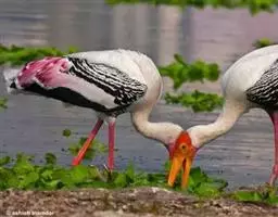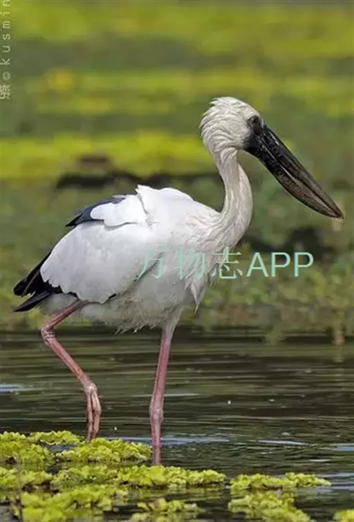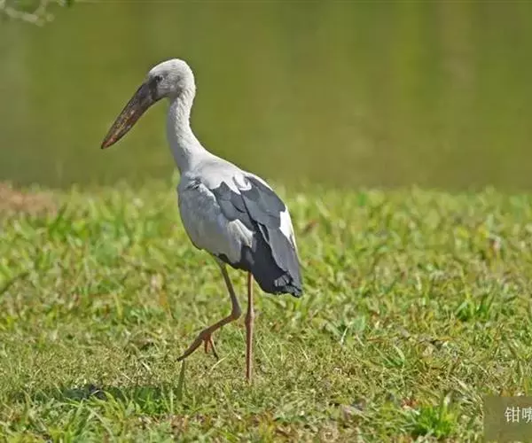 钳嘴鹳(学名:Anastomus oscitans):鹳科动物。双翅展开时宽达81厘米。体型很大,体长81厘米。体羽白色至灰色,冬羽烟灰色。飞羽和尾羽黑色。下喙有凹陷,喙闭合时有明显缺口。虹膜白色至褐色;脸部裸露皮肤灰黑色;喙淡绿的角质色或红色;脚粉红色。