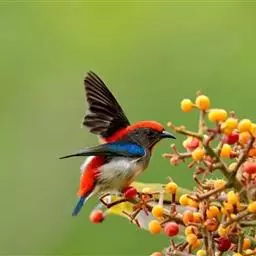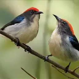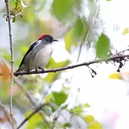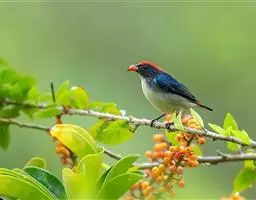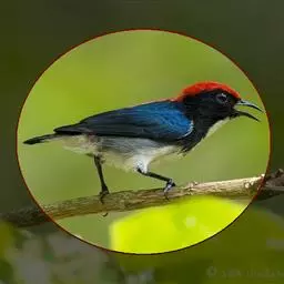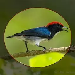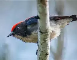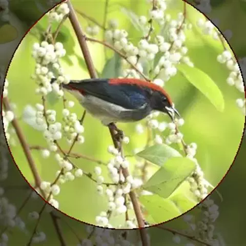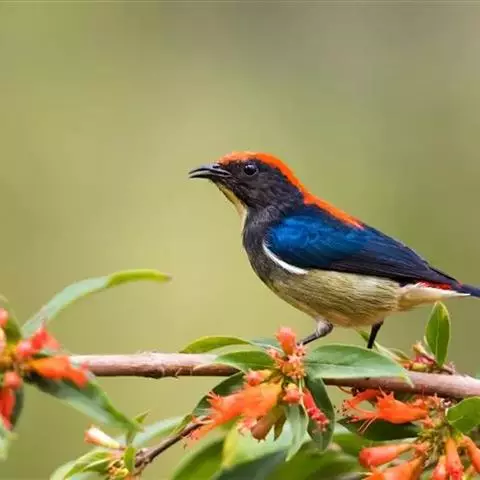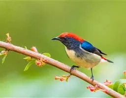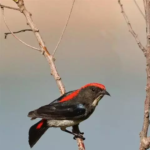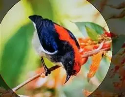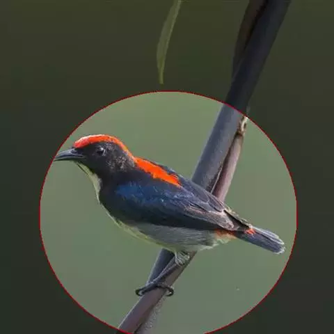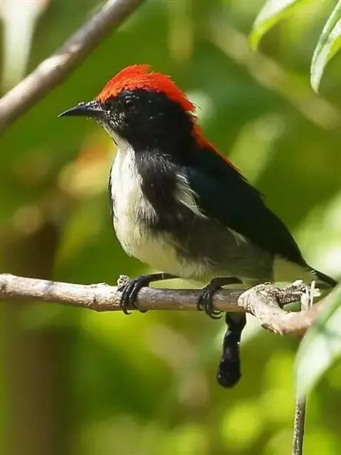 朱背啄花鸟:体重6-8克,体长81-97毫米。是一种小型的黑色及红色啄花鸟。雄鸟顶冠、背及腰猩红色,…