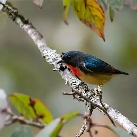 黄腹啄花鸟:体重11-16克,体长104-117毫米。是一种体型大,下腹部为艳黄色的啄花鸟,…