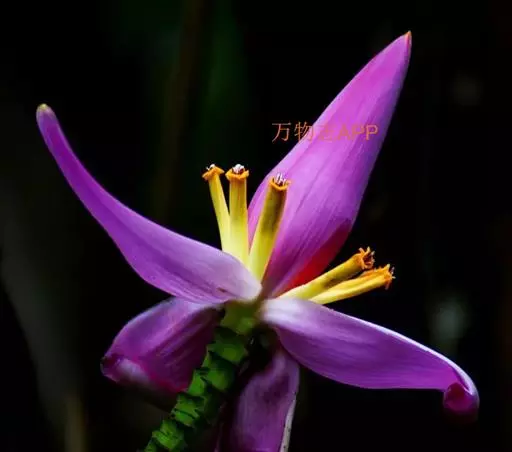 外形艳丽的是苞片,真正的花是躲于长圆形苞片的保 版纳热带花卉园中的紫苞芭蕉 护下,直到授粉才暴露出来的黄色小花。当下部的苞片向外反折时,可见到排成一行的雌花3—5朵,异化的萼片位于小香蕉状的子房上方。雄花也是3—5朵排成一行,但着生于顶端的苞片内,且晚些成熟,苞片叠瓦状或顶端微卷。果实状如指头,长6—8cm,种子黑色,但不可食。当果实成熟后,假茎会死亡凋零,新叶芽会从根茎处重新长出。