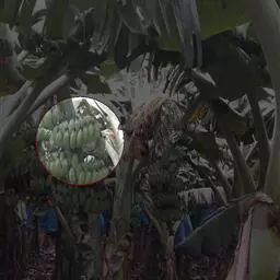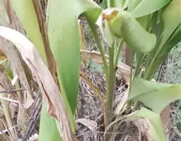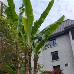 香蕉’),芭蕉科芭蕉属多年生草本植物,植株丛生,有匐匍茎;假茎浓绿有黑色斑点;叶片长圆形,…