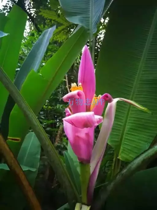 因其花序末端层层包覆的苞片酷似莲花,因此又叫莲花蕉。为芭蕉科(Musaceae)芭蕉属多年生草本植物,假茎细长,高达1—3m,叶子长椭圆形,长可达2m,宽达35cm。