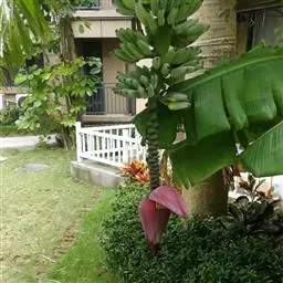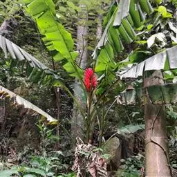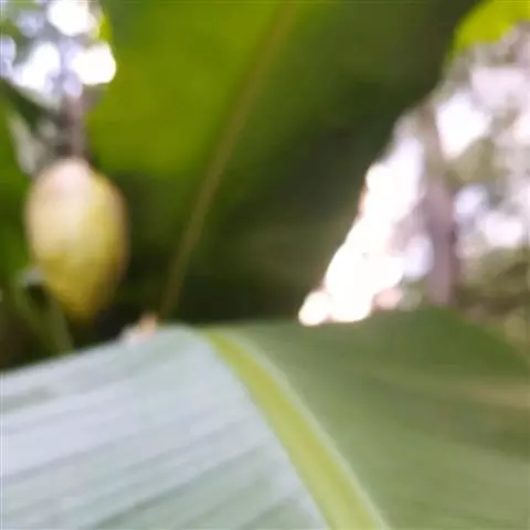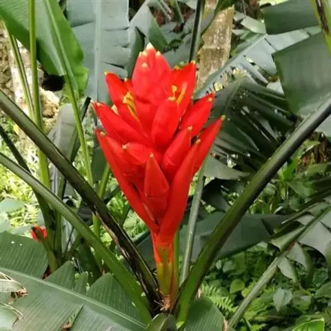 紫苞芭蕉形如一枝亭亭玉立、含苞待放的荷花,但却开在高高的芭蕉树上,这就是紫苞芭蕉。