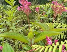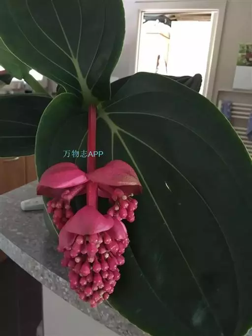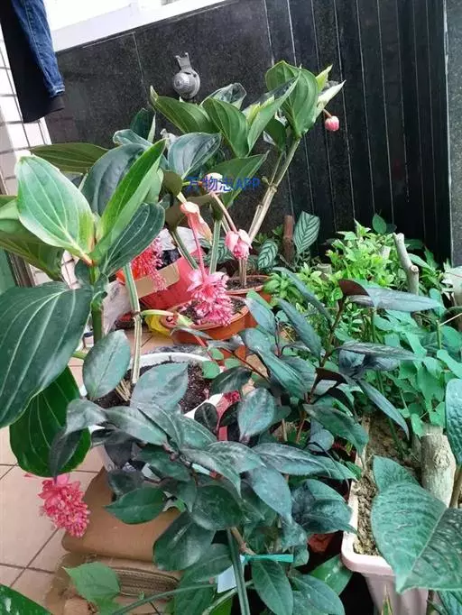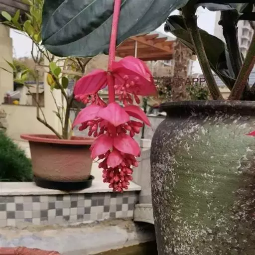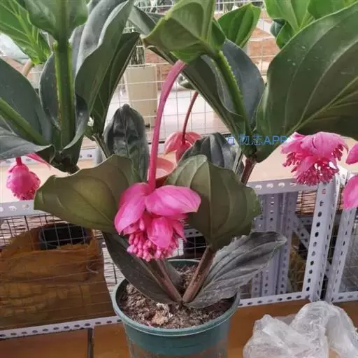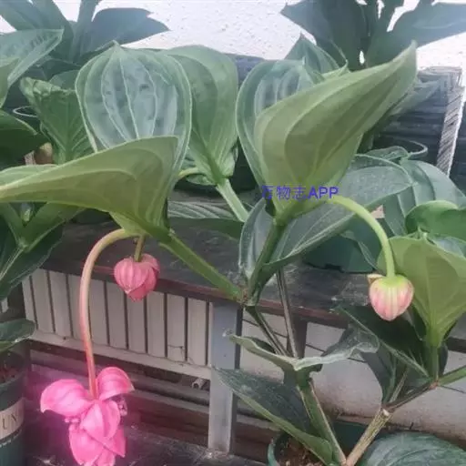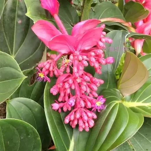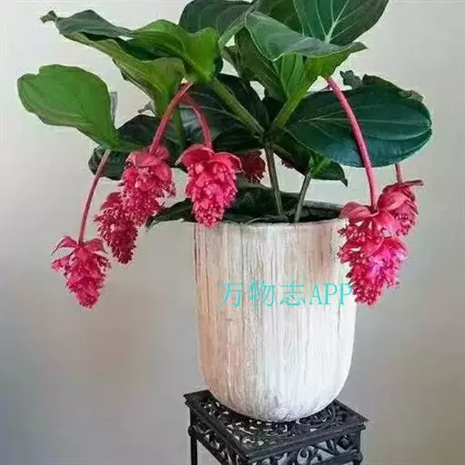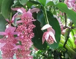 粉苞酸脚杆(学名:Medinilla magnifica Lindl. )是野牡丹科,酸脚杆属常绿小灌木,宝莲灯茎较短而粗壮,叶形类似柑橘,互生。植株多分枝,花茎从叶腋处抽出,硕大的花蕾类似倒挂的灯笼,开花时的花瓣类似倒开的荷花,花茎顶端和花瓣处挂满类似珍珠宝石的小球,故名宝莲灯花。花色有浅粉色和粉红色。花期为2月至8月,花开时间可长达百天以上。