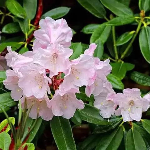 云锦杜鹃是杜鹃花科杜鹃属常绿灌木或小乔木;株高达12米;枝小枝粗,黄绿色,初具腺体;叶叶厚革质,…