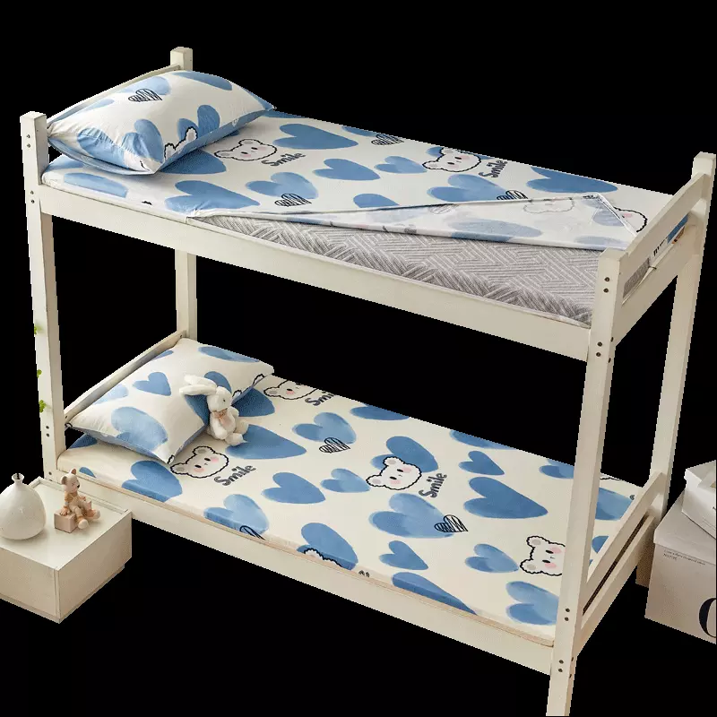 应考虑顶部面积加上床褥的厚度,以及下垂幅度,有时还应留出塞进枕头的面积。