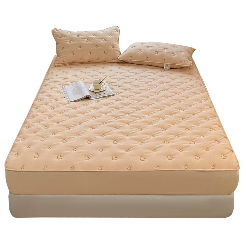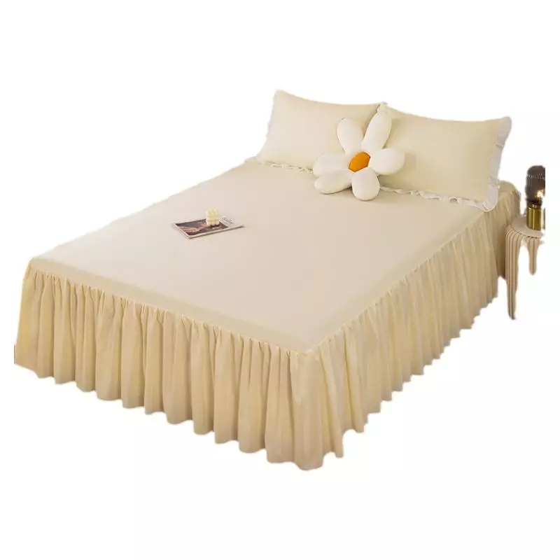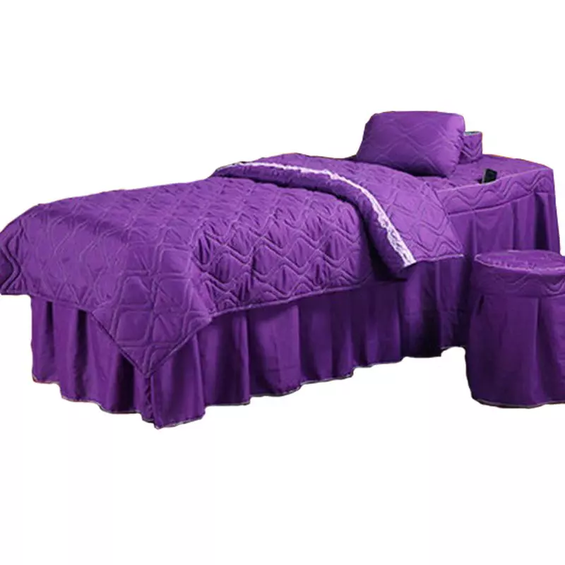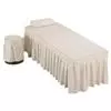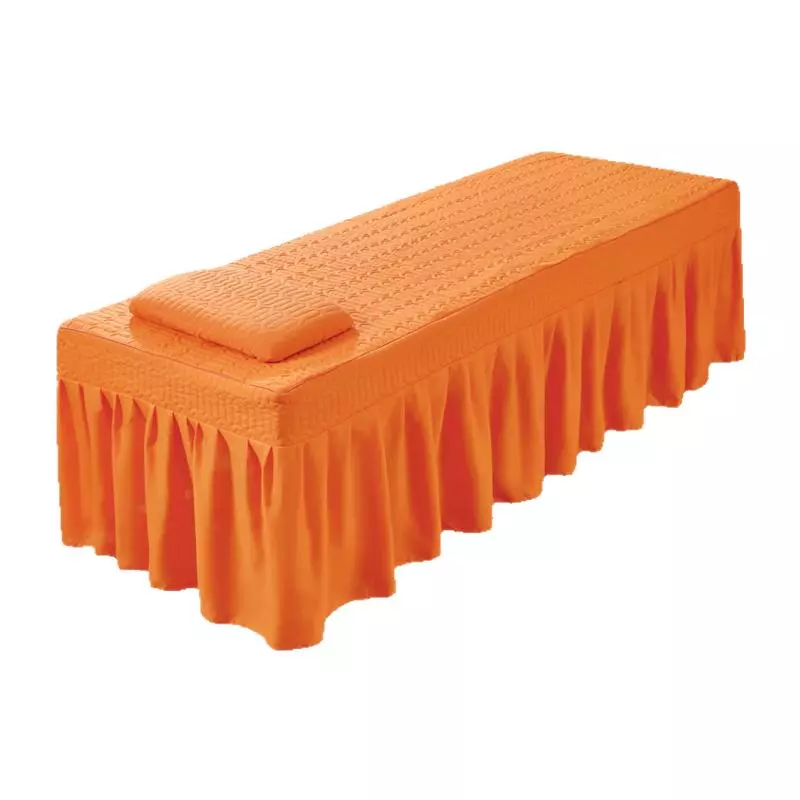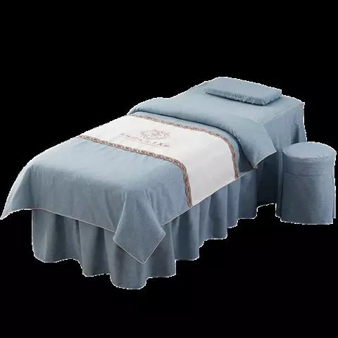 织锦床罩属锦类丝织物,色彩瑰丽、图案精细,具有民族特色,是一种高级床罩。绉地床罩又称泡泡纱床罩,用机织彩条泡泡纱制成,手感柔软。簇绒床罩又称绣绒床罩,可用纯棉、腈纶、丙纶等作原料,用簇绒机将有色纱线固定在底布上,在底布的反面形成一定长度的绒缀,随后按描绘在底布上的花纹重复簇绒,再经缝边、刷绒等整理加工。为避免绒头落毛还可进行湿整理。簇绒床罩的缝边整理是先用多股线四面锁边,随后将床罩的三面用排须装饰,排须的颜色应与床罩的基础色一致。