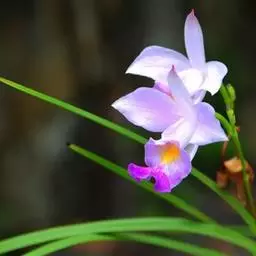 长叶山兰:假鳞茎椭圆形至近球形,有2-3节,外被撕裂成纤维状的鞘。叶2枚,偶有1枚,生于假鳞茎顶端…
