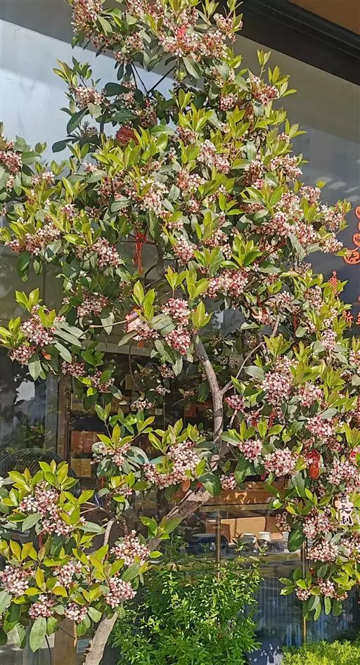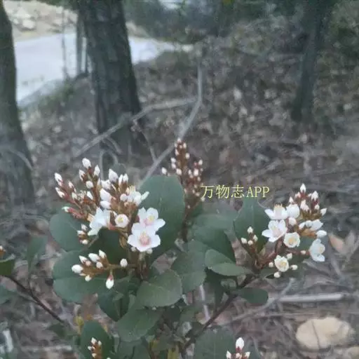 石斑木,别名:春花、雷公树、白杏花、报春花、车轮梅,拉丁文名:Rhaphiolepis indica.原产于中国及印度,主要分布在华东、华南至西南;中亚热带常绿、落叶阔叶林区;南亚热带常绿阔叶林区;热带季雨林及雨林区。其为亚热带树种。花朵美丽,枝叶密生,能形成圆形紧密树冠。在园林中最宜植于园路转角处,或用于空间分隔,或用于作阻挡视线的隐蔽材料。果实可食用。花、枝叶、果实均为高级花材,果实亦可制药。木材带红色,质重坚韧,可作器物;果实可食。