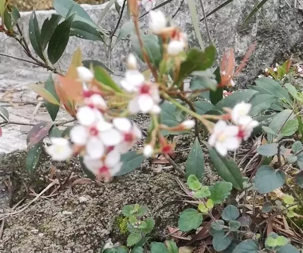 石斑木恒春变种Rhaphiolepisindica(L.) Lindl. ex Ker var.hiiranensis(Kanehira) Li.叶片长圆形至倒披针形,长4-5厘米,宽1.5-2厘米,先端圆钝,边缘上半部有锯齿;花序具少数花,疏生柔毛;苞片披针形,长约4毫米,花梗长7-15毫米,萼片长约3毫米。产台湾(恒春半岛)。
