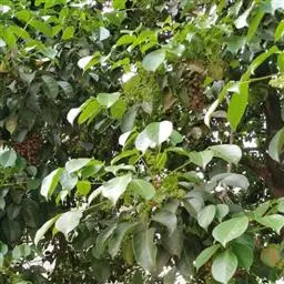 果实采收调制:从生长健壮的树木中采集果实,当果皮曝裂、果核脱落时即可采种。果实采收有两种方法:一是果实成熟时,摇动树干或果枝,让果核自然跌落收集;二是用高枝剪剪断果实已熟的果枝。摘取果实后置于袋中堆沤34天,切记不宜曝晒,待果皮腐烂软化后,在竹筛中用瓦片或木棒搓擦至果皮和果核分离,清水冲洗果肉,除去果皮,即得到种子。银柴的出种率、净度、千粒质量分别为39.23%、99%、96.94克。纯净种子10316粒/千克。
