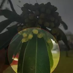 大果粗叶榕(Ficus hirta Vahl var.roxburghii (Miq.) King):又称大果佛掌榕(云南种子植物名录)、青冈果、马草果(河口、屏边)、猫卵子果。该变种叶通常掌状分裂。小枝和叶柄被褐色长糙毛。榕果大,近球形,直径25-30毫米,表面被褐色糙毛和灰绿色长柔毛,基生苞片卵状披针形,长6-8毫米,雄花和瘿花花被片不为齿裂。花果期4-6月。分布于中国(广东、海南、广西、福建、云南)、印度(东北部)、缅甸、越南、泰国和印度尼西亚等地。常生于低海拔林下或林缘。