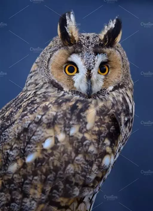 中型鸟类,体长33-40厘米。面盘显著,中部白色杂有黑褐色,面盘两侧为棕黄色而羽干白色,羽枝松散,前额为白色与褐色相杂状。眼内侧和上下缘具黑斑。皱领白色而羽端缀黑褐色,耳羽发达,长约50毫米,位于头顶两侧,显著突出于头上,状如两耳、黑褐色,羽基两侧棕色,内翈边缘有一棕白色斑。上体棕黄色具粗著的黑褐色羽干纹,羽端两侧密杂以褐色和白色细纹,上背棕色较淡,往后逐渐变浓,羽端黑褐色斑纹亦多而明显,肩羽同背,但在羽基处沾棕色,外翈近端处有棕色至棕白色圆斑。小覆羽羽基棕色,羽端黑褐色而微缀以棕色或白色斑,大覆羽外翈近端处有棕色或棕白色圆斑,初级覆羽黑褐色杂以棕栗色横斑和黑褐色细小斑点。初级飞羽黑褐色,基部具棕色横斑。端部则杂以灰褐色云石状斑和黑褐色横斑,次级飞羽灰褐色密杂以黑褐色横斑和斑点。尾上覆羽棕黄色,具黑褐色细斑,尾羽基部棕黄色,端部灰褐色,具7道黑褐色横斑,在端部横斑之间还缀有同色云石状细小斑点,外侧尾羽横斑更为细密。颏白色,其余下体棕黄色,胸具宽阔的黑褐色羽干纹,羽端两侧缀有白斑,上腹和两胁羽干纹较细并从羽干纹分出细枝,形成树枝状的横斑,羽端白斑亦更显著,下腹中央棕白色。跗蹠和趾被羽、棕黄色。尾下覆羽棕白色,较长的尾下覆羽白色而具褐色羽干纹。 虹膜橙红色,嘴和爪暗铅色,尖端黑色。