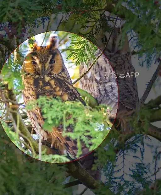 上文提到长耳鸮在东北三省和内蒙古东部为夏候鸟,但也发现例外,不知是因气候变暖还是长耳鸮耐寒能力增强了或者兼而有之,三九天在长春市新城大街的某培训中心大院里也见到了长耳鸮在树上晒太阳,从入冬一直住在这里,总共九只。图片为微信网友于2016年1月18日(农历腊月初九)长耳鸮在树上晒太阳。