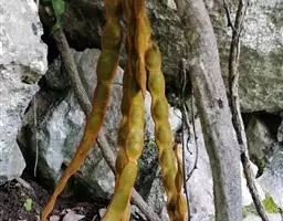 荚果带形,长7.5-13厘米,宽12-15毫米,扁平,被细长糙伏毛;种子每荚8-10颗,近方形,长和宽5-10毫米,扁平。花期8月,果期11月。