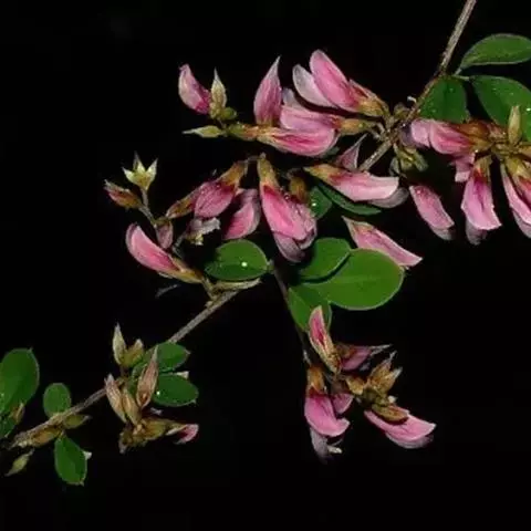 总状花序长15-30厘米,每节有花3-5朵;小苞片刚毛状,早落;萼长9-11毫米,被紧贴的长硬毛;花冠浅紫色或淡红色,旗瓣近圆形,长15-20毫米,中央近基部处有一黄绿色斑块及2枚胼胝状附属物,瓣柄以上有2枚半圆形、直立的耳,翼瓣镰刀形,基部具线形、向下的长耳,龙骨瓣近镰刀形,长1.5-2厘米;雄蕊二体,对旗瓣的1枚离生;子房被浅黄色长硬毛,花柱弯曲,柱头位于顶端以下的腹面。