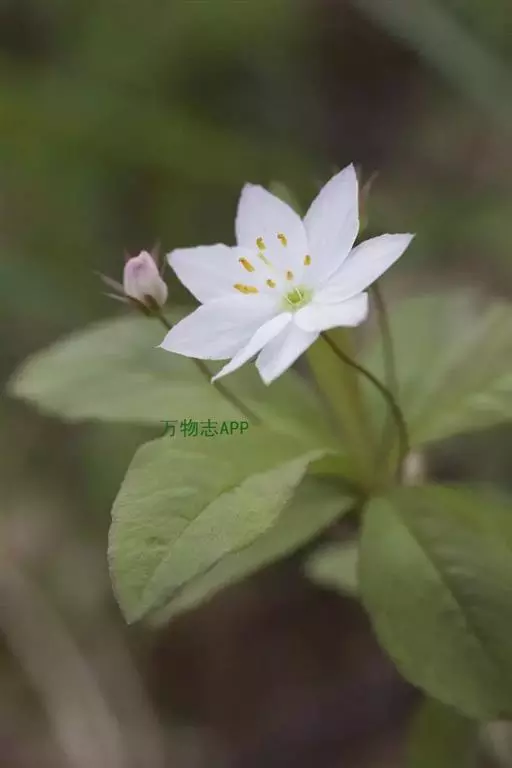 根茎纤细,横走,末端常膨大成块状,具多数纤维状须根。茎直立,高 5-25厘米。叶5-10枚聚生茎端呈轮生状,叶片披针形至倒卵状椭圆形,长2-7厘米,宽1-2.5厘米,先端锐尖或稍钝,基部楔形至阔楔形,具短柄或近于无柄,边缘全缘或具不明显的微细圆齿;茎下部叶极稀疏,通常仅1-3枚,甚小,长3-7毫米,宽1-2毫米,或呈鳞片状。花1-3朵,单生于茎端叶腋;花梗纤细,长2-4厘米;花萼分裂近达基部,裂片线状披针形,长4-7毫米;花冠白色,比花萼约长1倍,裂片椭圆状披针形,先端锐尖或具骤尖头;雄蕊比花冠稍短,长4-5毫米;子房球形,花柱约与雄蕊等长。蒴果直径2.5-3毫米,比宿存花萼短。花期5-6月;果期7月。 [1-2]