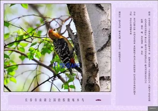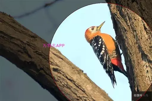 棕腹啄木鸟为啄木鸟科,啄木鸟属是中等体型的鸟类,体长约20厘米。头顶部具红色斑带。脚强健,有趾4个,…