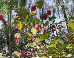自然杯状形树冠的培育:一年生嫁接苗移植后,留主干1 米髙,剪去顶梢,剪口芽留壮芽。在1米以下的部位不断抽出新 枝,可供选择留作主枝。一般在距地面30-40厘米处的新枝留作为第一主枝;在第一主枝上面20-30厘米处,选留新枝作为第二主枝;在1米的地方,即剪口芽抽出的新枝为第三主枝。三大主枝要均匀分布在主干周围,最好不要轮生。夏季修剪时,将主枝上的 直立枝、主干上的萌蘖枝和砧木上萌发的砧芽除去,以免影响主枝的生长和早日形成。第二年冬剪时,对各主枝进行短截,剪口芽留壮芽,以培养主枝延长枝。另外在各主枝上选留适合的侧枝。需要注意的是,同级侧枝留在同方向,以免侧枝互相交叉,影响树形和通风透光。