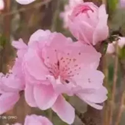红叶碧桃株高3—5米,树皮灰褐色,小枝红褐色。单叶互生,卵圆状披针形,幼叶鲜红色。花重瓣、桃红 色。核果球形,果皮有短茸毛,内有蜜汁。三月份先花后叶,烂漫芳菲,妩媚可爱,是优良的观花树种。
