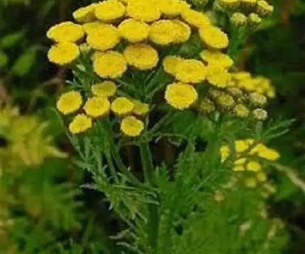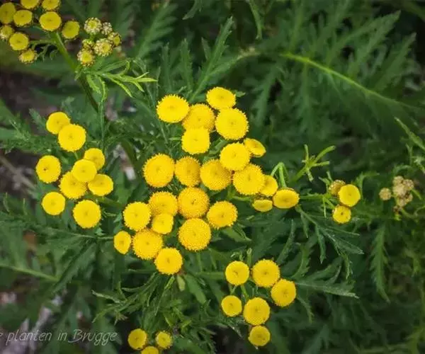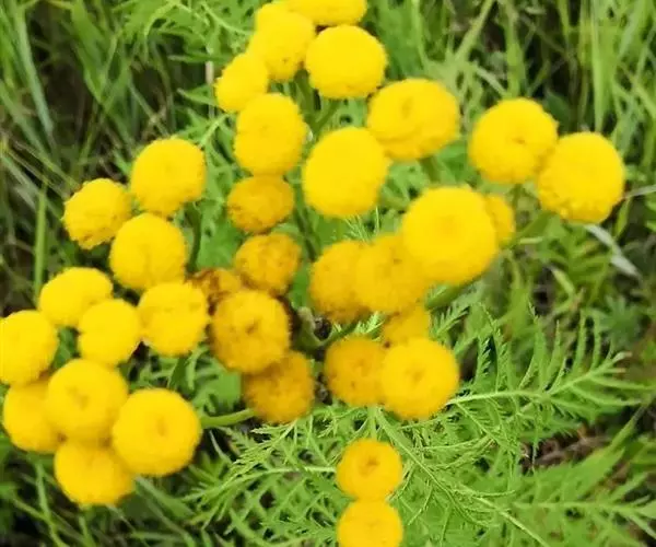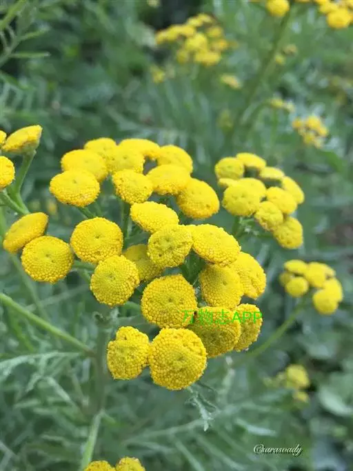 菊蒿,别名:艾菊,拉丁文名:Tanacetum vulgare L. 菊科、菊蒿属多年生草本,茎常无毛:无营养短枝。茎生叶多数,椭圆形或椭圆状卵形,裂片卵形、线状披针形、斜三角形或长椭圆形,全缘或有浅齿或半裂呈三回羽状分裂,羽轴有节齿;叶绿或淡绿色,有极稀疏毛,下部茎生叶有长柄,中上部茎生叶无柄。头状花序排成稠密伞房或复伞房花序:草质,边缘白或浅褐色窄膜质,先端膜质扩大,外层卵状披针形,中内层披针形或长椭圆形,全部小花管状,冠缘浅齿裂。花果期6-8月。茎及头状花序含杀虫物质,可作杀虫剂。