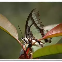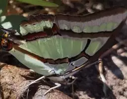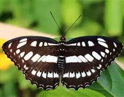 大二尾蛱蝶两翅正面黑色,中域有一浅绿色大型宽带纹,两翅反面浅绿色,中域有一缀黑边的褐色弧纹,…