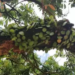 附生于阴湿的岩石或树上。分布于陕西、甘肃及华南大部分地区。