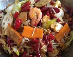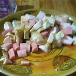 6、把沥干水的食材放入冰水中,保持食材脆爽(冰箱里常备一瓶冰水,做拌菜可以保持脆爽,另外,如在厨房溅到油、烫烧什么,可以马上敷下)。