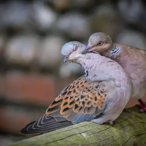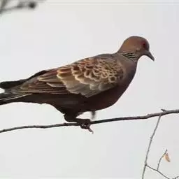 欧斑鸠体长27厘米,是一种体型略小的粉褐色斑鸠。颈侧具多黑白色细纹的斑块,翼覆羽深褐,…