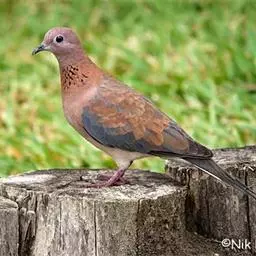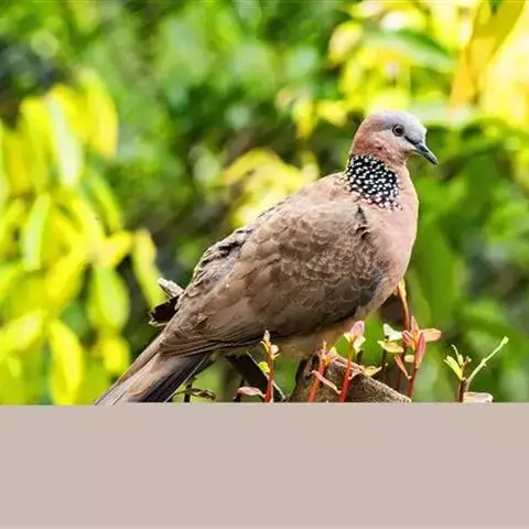 棕斑鸠,是鸽形目鸠鸽科斑鸠属鸟类。整个头和颈淡粉红色,头顶和前额较暗,颊、喉较淡,…