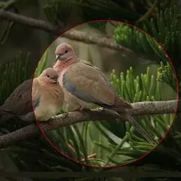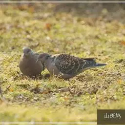 山斑鸠,是鸽形目鸽鸠科斑鸠属鸟类,又名金背斑鸠、棕背斑鸠、山鸠、金背鸠、麒麟斑、麒麟鸠、东方斑鸠、绿斑鸠、山鸽子。山斑鸠颈侧具明显黑白色条纹的块状斑,上体深褐色、具扇贝状斑纹,羽缘棕色,尾羽近黑色,下体多偏粉色。虹膜黄色,喙灰色,脚粉色。山斑鸠是留鸟,在中国常见且分布广泛。此外,还分布于不丹、尼泊尔、巴基斯坦、印度、日本等国。栖息于针阔混交林、季风常绿阔叶林、果园及农耕区,多成对活动于开阔农耕区、村舍、寺院周围及防火林带。取食于地面,主要觅食植物种子、果实、嫩芽等,也吃昆虫。山斑鸠飞翔时鼓翼快速,叫声为反复而低沉的“咕咕咕”声。繁殖期在4-7月,营巢于林中树上,通常一年繁殖2窝,窝卵数2枚,由雌雄亲鸟轮流孵卵,孵化期18~19天。山斑鸠的肉、卵可食,肉入药可益气明目、强筋壮骨,治久病气虚、衰弱无力、两目昏暗等病症。山斑鸠啄食杂草种子,对农田清除杂草有益;但有时也刨食农作物及树的种子。山斑鸠