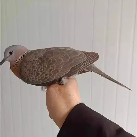 珠颈斑鸠(Streptopelia chinensis)是中国东部和南部最为常见的野生鸽形目鸟类,俗称“野鸽子”。体长30厘米左右,和鸽子大小相似。通体褐色,颈部至腹部略沾粉色。最引人注意的是它的颈部两侧为黑色,密布白色点斑,像许许多多的“珍珠”散落在颈部,为本种最为显著的特征,因而得名“珠颈”斑鸠。 不过这个珍珠斑点只有成年的珠颈斑鸠才有,幼鸟是没有的(此外,印度还有一个亚种也是没有“珍珠”的),且幼鸟的颜色也没有成鸟那样鲜艳。