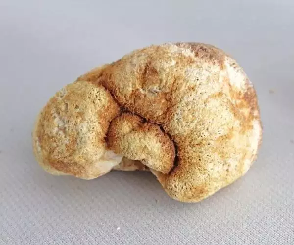 该品形似猴头,呈不规则块状,直径3.5~10cm,基部狭窄。表面浅黄色至浅褐色。子实体着生于菌剌上,菌刺长圆筒形,下端尖锐,长1~3cm,直径1~2mm,体轻,质软,易纵向撕开,断面浅黄至浅褐色,疏松。气香,味甘。