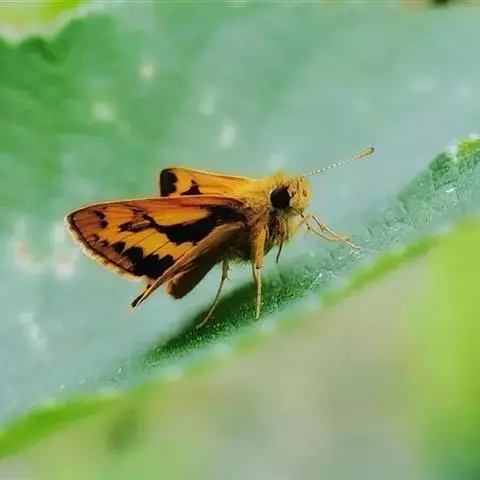 姜弄蝶 Udaspes folus ,又叫银斑姜蝶。幼虫吐丝粘叶成苞,隐藏其中取食,…