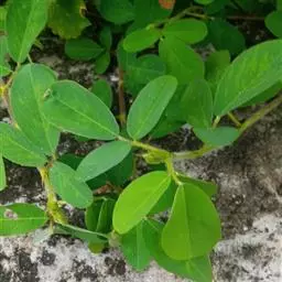 小叶3;托叶早落,狭卵形,长4-10毫米,宽1-2毫米,外面疏生柔毛,边缘有睫毛;叶柄长2-4厘米,被柔毛至渐变无毛;小叶长2-7厘米,宽1.5-5厘米,侧生小叶略小,先端圆或钝,或急尖至渐尖,基部宽楔形,常不对称或斜钝,上面被贴伏短柔毛或几无毛,下面被密或疏的短柔毛至近无毛,全缘或浅波状,侧脉4-6条,直达叶缘;小托叶线形,长1-3毫米,密被小柔毛;小叶柄长2-3毫米,被柔毛。