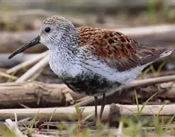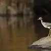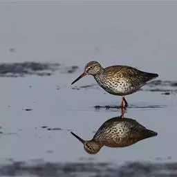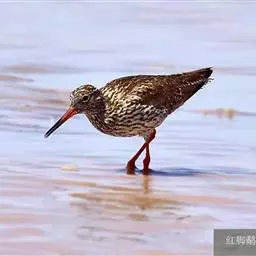 红脚鹬:体长28厘米,上体褐灰,下体白色,胸具褐色纵纹。飞行时腰部白色明显,次级飞羽具明显白色外缘。…
