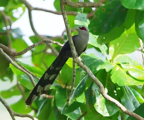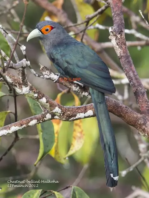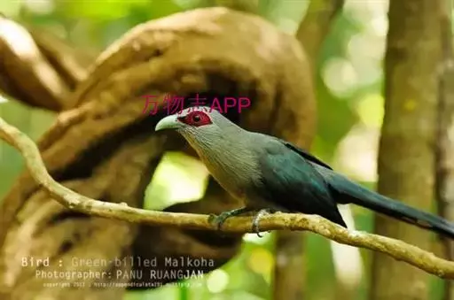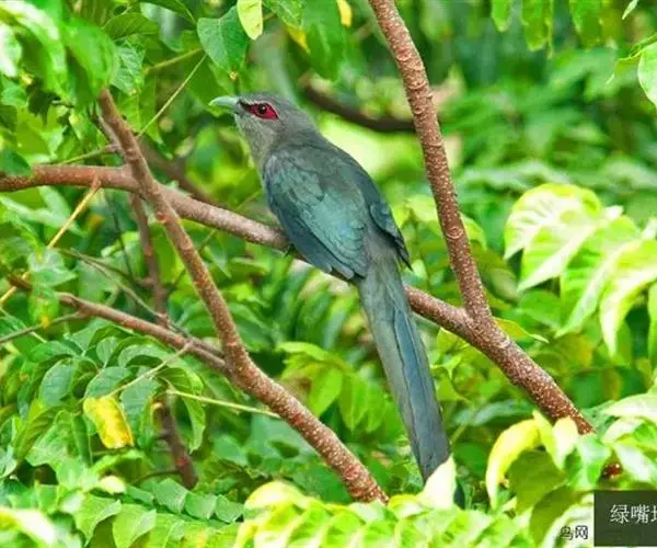 绿嘴地鹃(学名:Phaenicophaeus tristis):体形似小鸦鹃,但羽色大致绿灰;嘴绿色,头侧眼的周围有一裸区;后爪弯曲。虹膜赤红色,眼外周裸露皮肤繁殖期为赤红色,非繁殖期为暗红色。嘴绿色,基部及先端色暗,近嘴角处常沾红色,非繁殖期下嘴黄褐色,脚石板绿色。幼鸟和成鸟相似,但缺少光泽。枕、颈和上背沾棕栗色,下嘴橙褐色,尾较短。