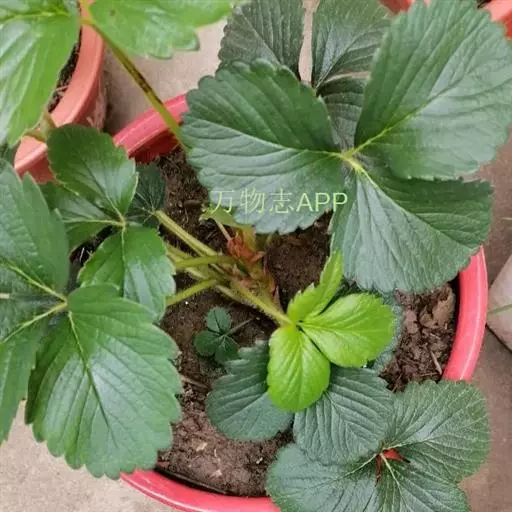 草莓(英文学名:strawberry、拉丁学名:Fragaria × ananassa Duch. 别名: 凤梨草莓),多年生草本植物。高10-40厘米,茎低于叶或近相等,密被开展黄色柔毛。叶三出,小叶具短柄,质地较厚,倒卵形或菱形,上面深绿色,几无毛,下面淡白绿色,疏生毛,沿脉较密;叶柄密被开展黄色柔毛。聚伞花序,花序下面具一短柄的小叶;花两性;萼片卵形,比副萼片稍长;花瓣白色,近圆形或倒卵椭圆形。聚合果大,宿存萼片直立,紧贴于果实;瘦果尖卵形,光滑。花期4-5月,果期6-7月 。