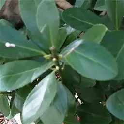 常绿灌木或小乔木,高达8米。 叶光亮革质,倒卵形或窄长椭圆形,长3-6厘米,宽2-3厘米。 聚伞花…