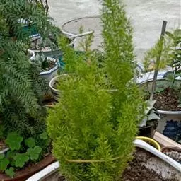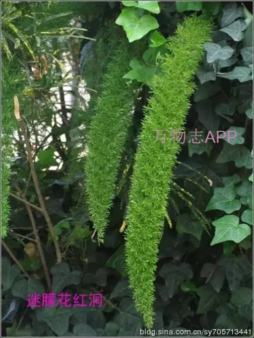 狐尾武竹因植株形似狐狸的尾巴而得名,植株丛生,茎直立生长,高30厘米至60厘米,稍有弯曲,但不下垂。又名狐尾天冬,是天门冬的改良品种,枝叶比武竹密。