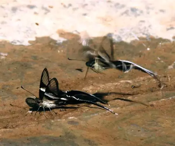 成虫前翅激烈振动,后翅水平伸向后方,一般沿林中小径和离地面不高的地方飞行,常常向前冲或向后退。它们是贪婪的吸水者,在水面上飞舞摆动时颇似蜻蜓,所以有人称蜻蜓蝶。奇怪的是常从腹末有节奏地射出水液。两性均爱访花吸蜜,在吸蜜前双翅不停振动,尾部亦摆动不停,停在花上时腹部高高翘起。平时飞行很快,难以捕捉。卵单产在寄主植物嫩叶的背面。幼虫栖息在叶的背面。幼龄幼虫有在叶中侧部开1圆孔取食的习性。老熟幼虫在寄主植物附近的其他植物的叶背面化蛹。本种为亚热带及热带种。
