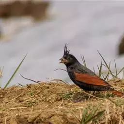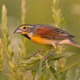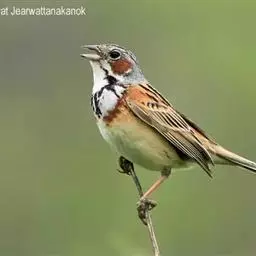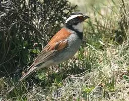 栗斑腹鹀:属小型鸣禽。体重19-25克,体长145-167毫米。头顶至背栗红色,眼先和颧纹黑褐色,…