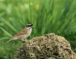 黄眉鹀是雀形目鹀科鹀属鸟类,体型中等偏小。雄鸟头部主要为黑色,冠纹白色,眉纹前段黄色而后段白色,…