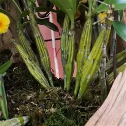 刀叶石斛是一种喜阴凉的多年生草本植物,喜在温暖、潮湿、以年降雨量1000毫米以上、半阴半阳的环境,1月平均气温高于8℃的亚热带深山老林中生长为佳,适宜生长温度为15到28度,适宜生长空气湿度为60%以上,对土肥要求不甚严格,野生多在疏松且厚的树皮或树干上生长,有的也生长于石缝中。属气生根系,主要要求根部通透性好,采用的基质最好能通风透气滤水,在适宜的温度湿度下,生长速度快,生存能力非常强。每年春末夏初,二年生茎上部节上抽出花序,开花后从茎基长出新芽发育成茎,秋冬季节进入休眠期。