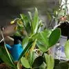 通常选用四壁多孔的塑料或陶瓷花盆,用碳根、泥炭藓、树皮块、木炭块等作盆栽材料。根据兰苗的大小,选择不同规格的花盆,但不宜用大盆栽小苗口上述栽好材料在使用前必需在清水中浸泡1天以上备用。盆底要多垫大瓦片或碎砖块,深度至盆底约1/3处,然后将兰苗放于盆中央,并在一旁插一细竹竿以固定兰苗,再填入其他栽培材料,注意根与根之间用材料隔开。