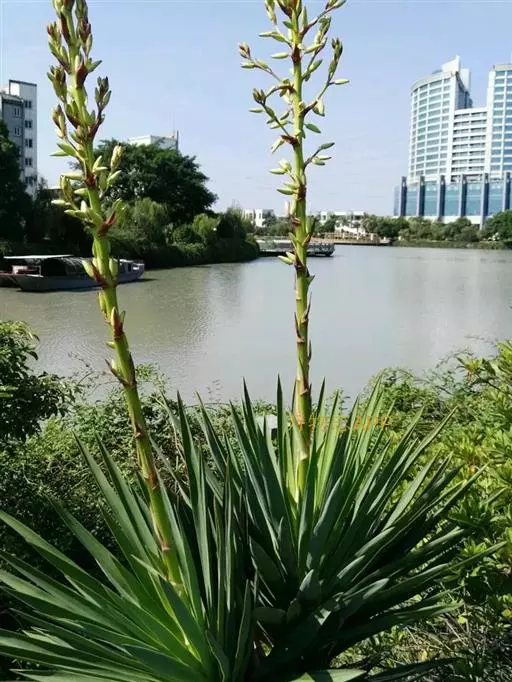 凤尾丝兰又称菠萝花 ,龙舌兰科 ,学名Yucca gloriosa L. ,常绿木本植物,具短茎并常有分枝。夏、秋两季为开花期。 植株呈莲座状,大型的圆锥花序着生多数似钟形而下垂的洁白花朵,给人以素雅而脱俗之感。既可观花,又可赏叶。