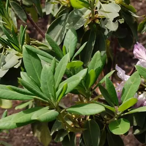 高山杜鹃(学名:Rhododendron lapponicum (L.) Wahl.):常绿小灌木,高可达1米,分枝繁密,伏地或挺直。叶常散生于枝条顶部,革质,上面浅灰至暗灰绿色,下面淡黄褐色至红褐色,叶柄被鳞片。花序顶生,伞形,有花数朵;花芽鳞脱落;花萼小,带红色或紫色,花冠宽漏斗状,淡紫蔷薇色至紫色,罕为白色,花丝基部被绵毛;蒴果长圆状卵形,5-7月开花,9-10月结果。