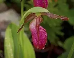 大花杓兰因其形状酷似一个口小肚大的囊袋,又名“大口袋兰”。花体呈紫红色,花朵直径5厘米至6厘米,…